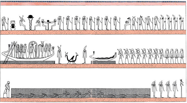 processes of light (Atum-Re), the darkness of the Duat of Osiris crossed