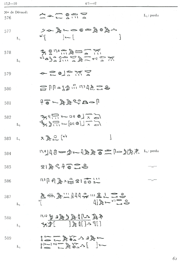 Hieroglyphic text of the Maxims of Good Discourse In 1956, Zába realized a decisive translation and also reproduced the hieroglyphs of the four main sources in a comprehensive and clear way (which was absent in the work of Dévaud, 1916). These hieroglyphs were published more than 40 years ago by the "Academie Tchécoslovatique des Sciences" of Prague (under the academician Frantisek Lexa), i.e. in former Czechoslovakia. They are identical with those published by him in 1948 in his thesis : Les Maximes de Ptahhotep, Texte, Traduction et Commentaires. |